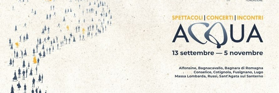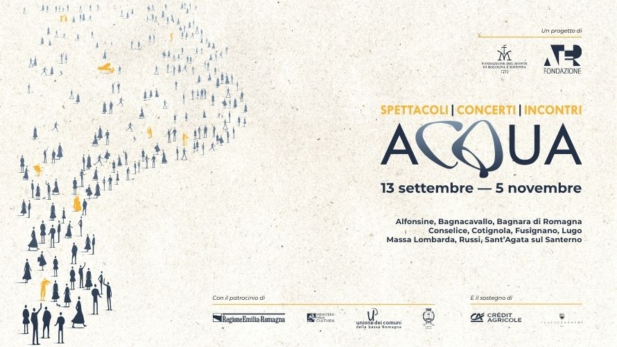 ACQUA è una rassegna che si svolge dal 13 settembre al 5 novembre nei Comuni della Bassa Ravennate colpiti dalle alluvioni recenti. Undici appuntamenti tra teatro, musica, incontri e conferenze per riflettere sul cambiamento climatico e il suo impatto su territori, persone e comunità.